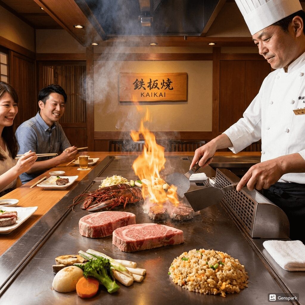目の前で焼き上げられる和牛は、日本旅行のハイライトになります。