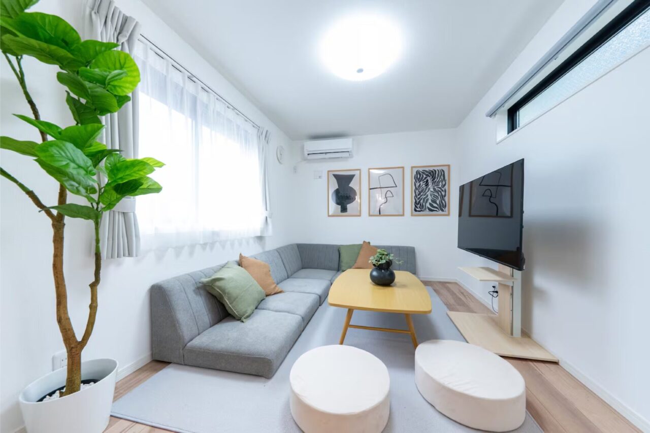 9人グループ(大人6人、子供3人)にぴったりでした。駅まで徒歩10~15分で、山手線を使えば行きたいところへ簡単にアクセスできました。街に比べて静かですが、近くにはたくさんの飲食店やお店があります。
